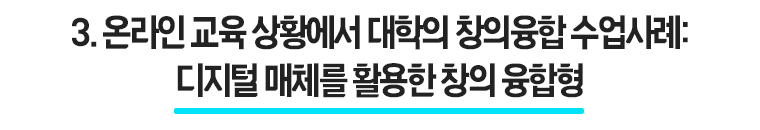 인터렉티브한 수업 형태를 구축할 수 있도록 온․오프라인의 빠른 전환과 디지털 매체의 활용 등 동기유발과 재미를 위한 좀 더 다양한 효과들을 위한 교수자 개인의 역량 증진도 분명 필요한 부분이라 생각된다.